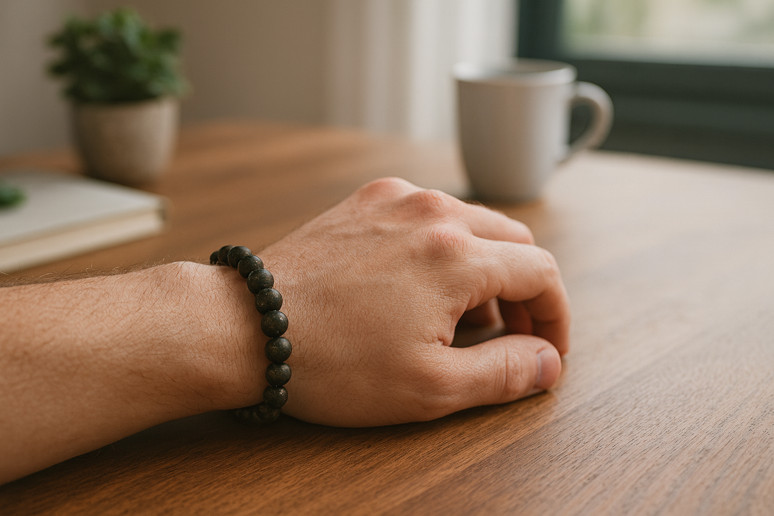 Elevate your energy and style with this raw pyrite bracelet – a must-have crystal accessory for those seeking balance, prosperity, and natural beauty.