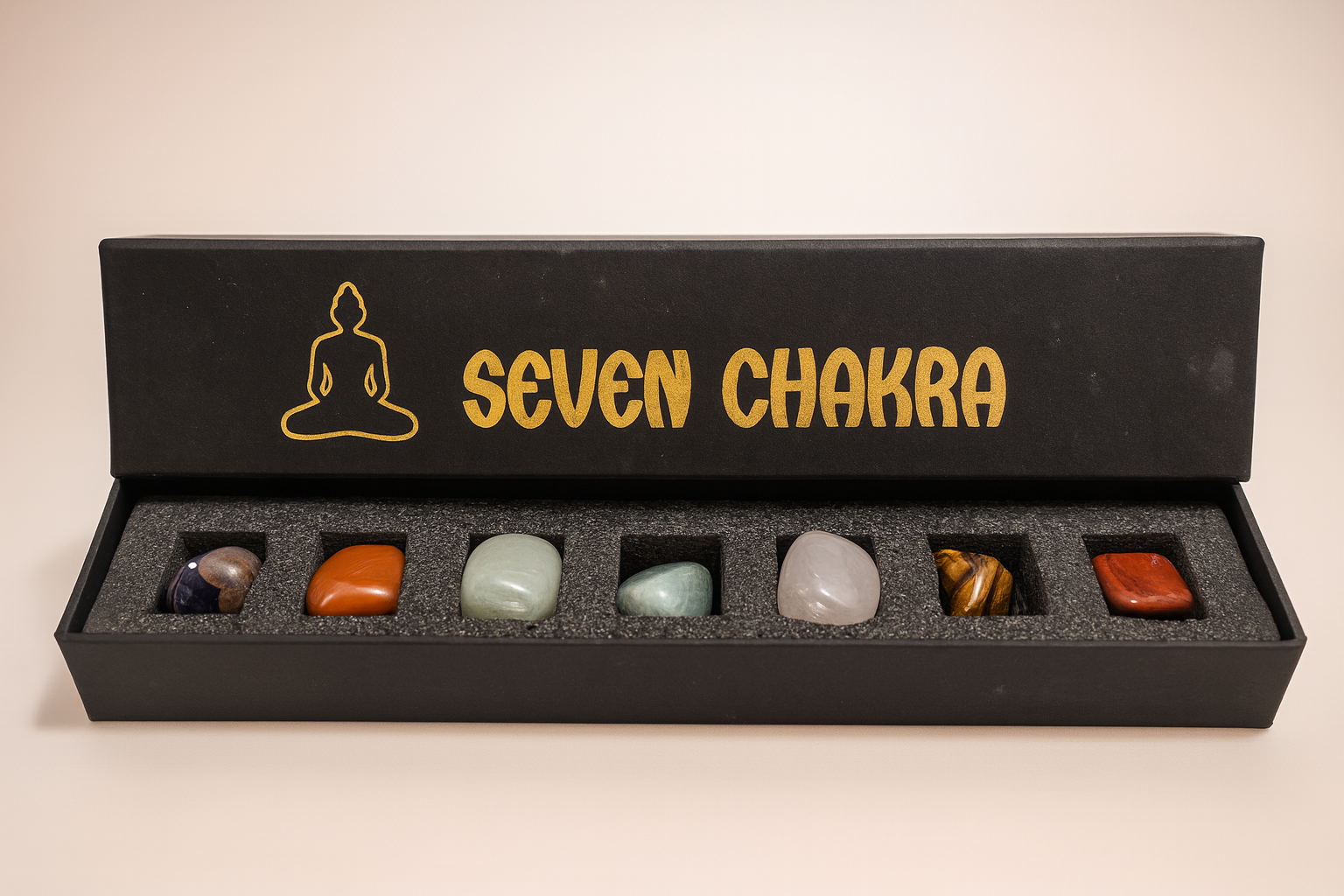 Ideal for meditation, Reiki healing, yoga, and energy work, these natural stones emit positive vibrations that promote peace, focus, and inner strength. Presented in an elegant black box with gold “Seven Chakra” engraving, it makes a perfect gift for spiritual seekers, wellness enthusiasts, and energy healers.