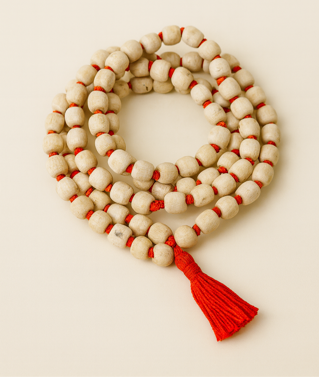 The 108 beads plus the Guru bead make it ideal for mantra chanting, enhancing concentration and devotion. Wearing or using a Tulsi Mala brings peace of mind, spiritual upliftment, and divine blessings. The vibrant red tassel adds a sacred touch, making it perfect for spiritual seekers and devotees.